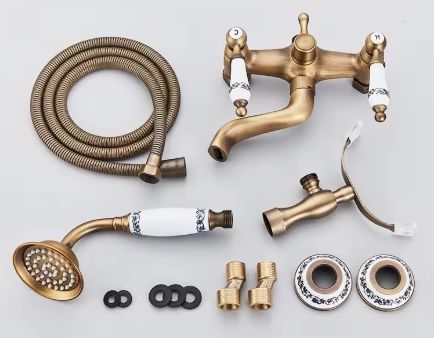 Antikolt réz kádtöltő csaptelep porcelán fogantyúkkal